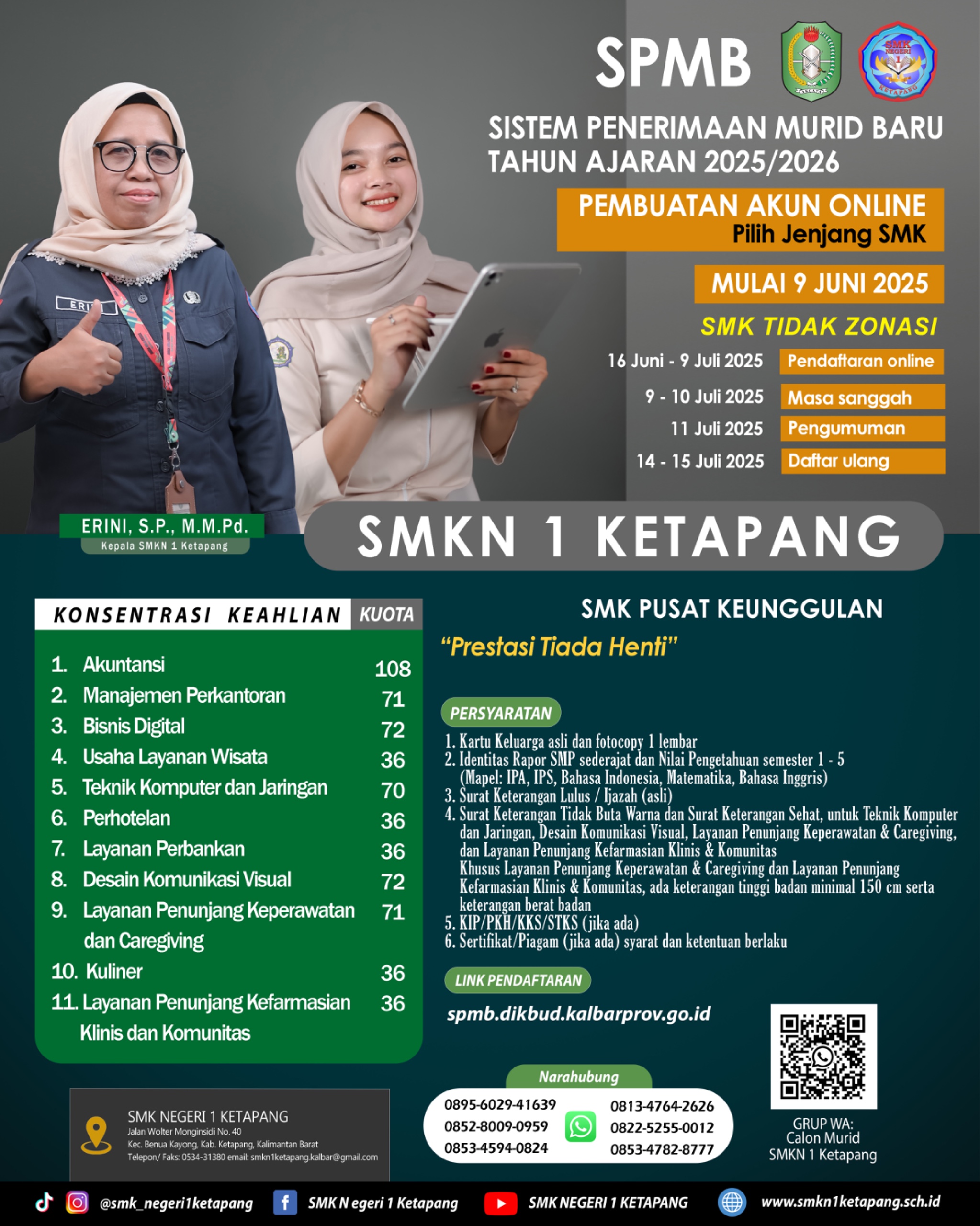 SMK NEGERI 1 KETAPANG BUKA PENERIMAAN MURID BARU TAHUN AJARAN 2025-2026 TANPA ZONASI