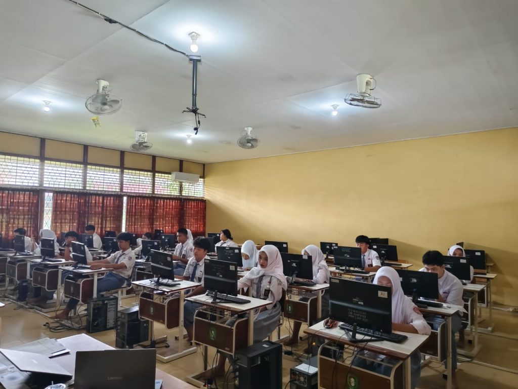 Masing-masing laboratorium diisi oleh 20 peserta setiap sesi. Namun, pada sesi ketiga di Lab MYOB, terdapat 21 peserta karena jumlah keseluruhan peserta yang ganjil. Meskipun demikian, kegiatan tetap berjalan dengan tertib dan efisien berkat koordinasi yang baik antara panitia, pengawas, serta tim teknis sekolah.